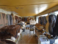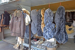 Straßenverkauf von Schaffellen und Erzeugnissen aus Leder und Wolle.